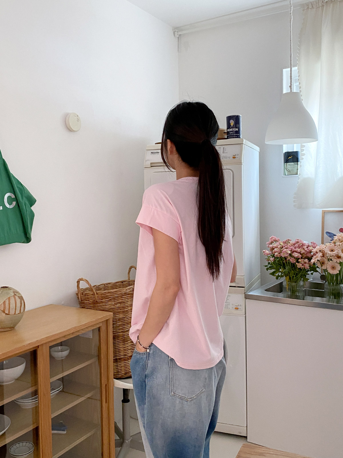 오버핏으로 체형 부각이 덜하며, 여름에 답답하지 않고 시원하게 입을 수 있고, 색깔도 다양해 데일리 나시티로 추천해요!